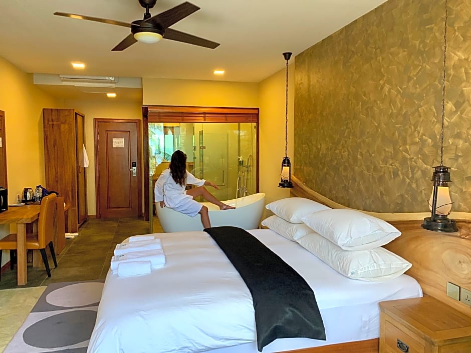 The spacious double room offers air conditioning, soundproof walls, a terrace with sea views as well as a private bathroom featuring a walk-in shower. The unit offers 1 bed.
